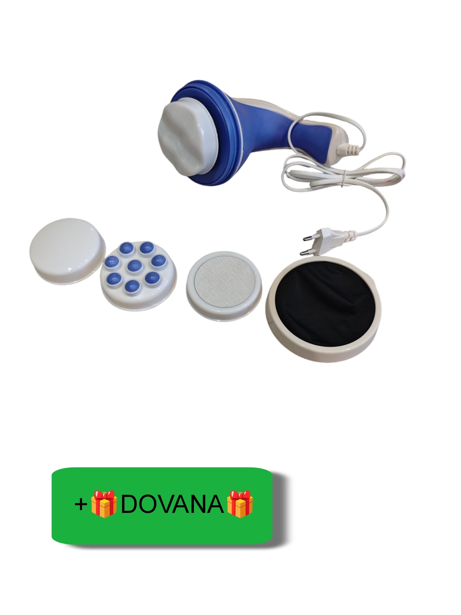 - Komplekte 5 galvutės: anticeliulitinė, masažuojanti, drenuojanti, šveičiamoji (pėdoms), tinklelis.